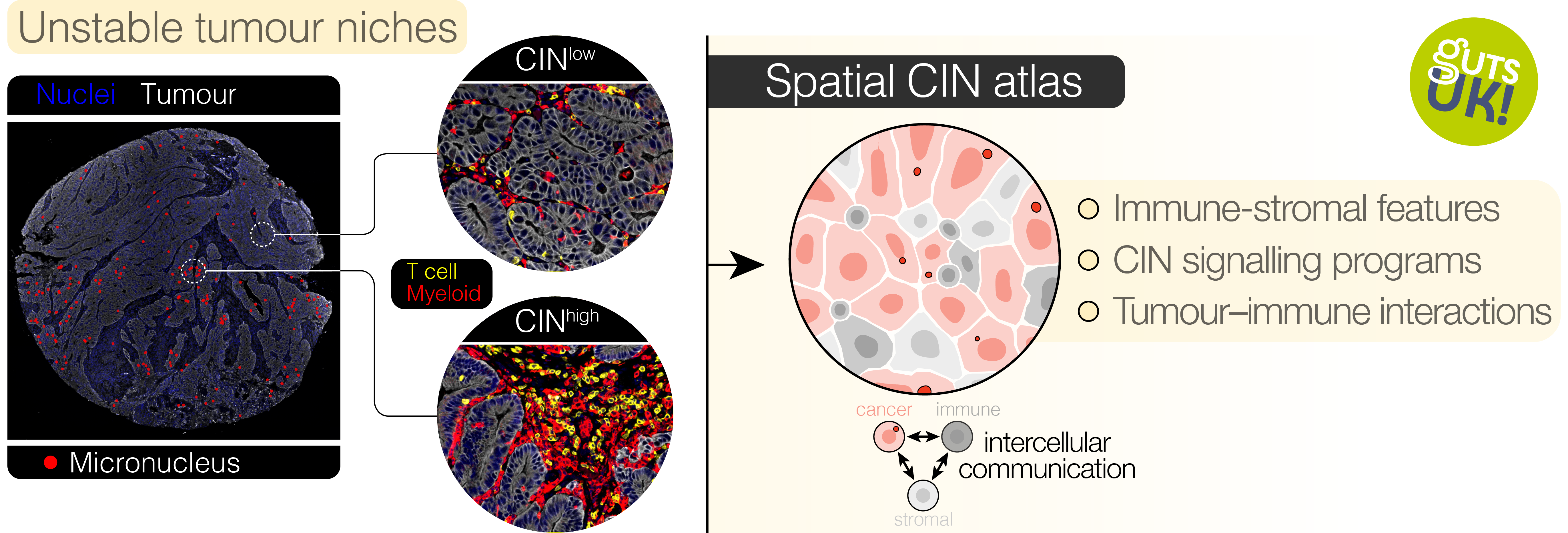 Dr Beernaert has been awarded an Early Career Researcher Development Grant from Guts UK to investigate how CIN shapes the tumour microenvironment within OGC. Building on his image-based CIN detection platform, he will use spatial transcriptomics to map CIN within patient tumour samples and determine the intercellular communication landscape that defines these niches.